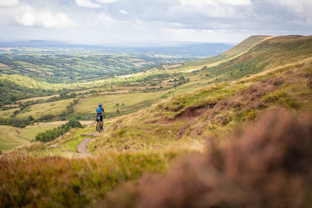 At the top, the bridleway disappears into a maze sheep tracks. But you are spoilt by endless views of the landscape 600 metres below you (if it isn’t cloudy). The descent is mostly rideable, as you fly down into England briefly before you loop back to the finish in Wales.